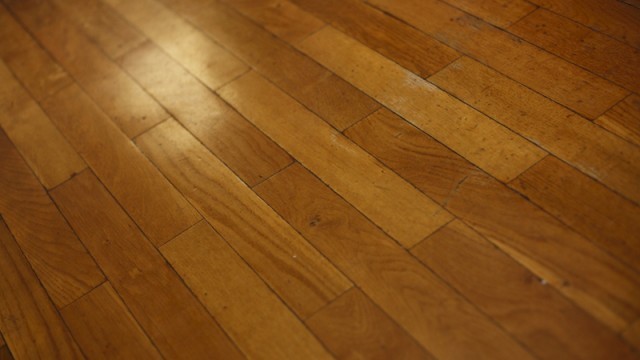 A new coat of polyurethane can sometimes make a wood floor look a little too shiny. To tone down the shine and cut the glare, spray some WD-40 onto a soft cloth and wipe up the floor with it.