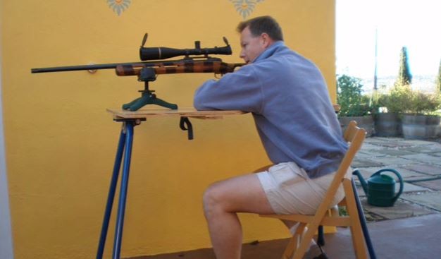 A favorite and the most accurate, way to sight in a rifle is with the aid of a shooting bench. A shooting bench eliminates a lot of the movement that can occur when aiming down the sights, from the motion of breathing to the vibration of your heartbeat.